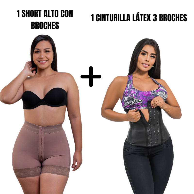 OFERTA DE SHORT ALTO REALCE NATURAL COCOA + CINTURILLA LATEX 3 HILERAS